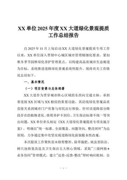 【七哥公文】2025年:XX单位2025年度XX大道绿化景观提质工作总结报告+更多免费公文+VX:QiGeGongWen2024