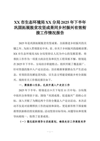 【七哥公文】2025年:XX市生态环境局XX分局2025年下半年巩固拓展脱贫攻坚成果同乡村振兴有效衔接工作情况报告+更多免费公文+VX:QiGeGongWen2024