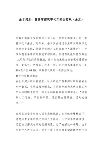 【七哥公文】2025年:金禾实业:智管智控筑牢化工安全防线(企业)_副本+更多免费公文+VX:QiGeGongWen2024