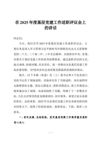 / 【七哥公文】2025年:在2025年度基层党建工作述职评议会上的讲话+更多免费公文+VX:QiGeGongWen2024