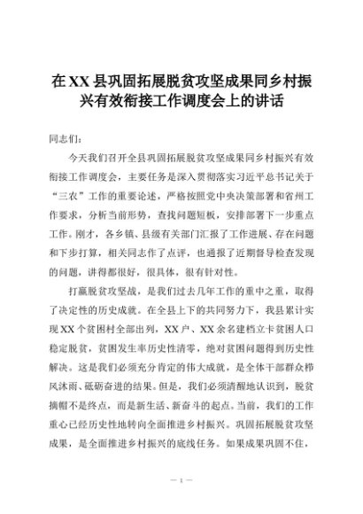 【七哥公文】2025年:在XX县巩固拓展脱贫攻坚成果同乡村振兴有效衔接工作调度会上的讲话+更多免费公文+VX:QiGeGongWen2024
