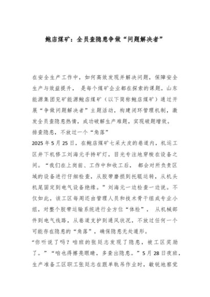 / 【七哥公文】2025年:鲍店煤矿:全员查隐患争做“问题解决者”_副本+更多免费公文+VX:QiGeGongWen2024