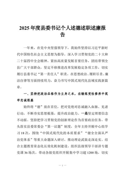 / 【七哥公文】2025年:2025年度县委书记个人述德述职述廉报告+更多免费公文+VX:QiGeGongWen2024
