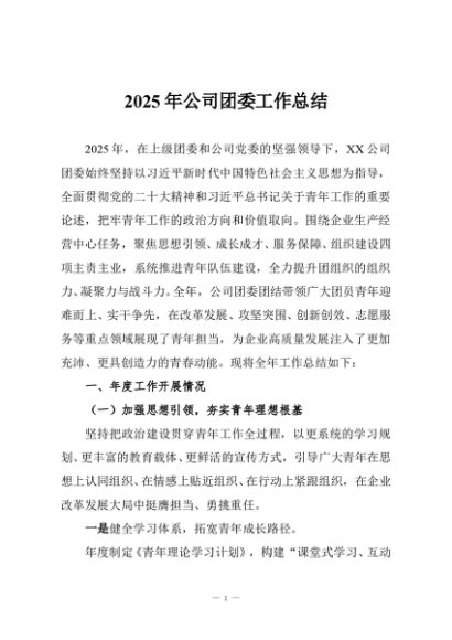 / 【七哥公文】2025年:2025年公司团委工作总结+更多免费公文+VX:QiGeGongWen2024