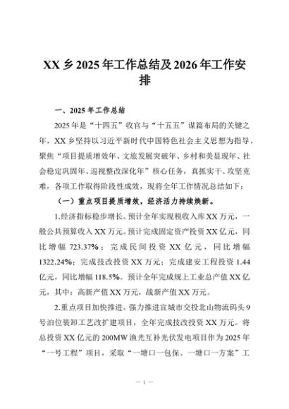 / 【七哥公文】2025年:XX乡2025年工作总结及2026年工作安排+更多免费公文+VX:QiGeGongWen2024