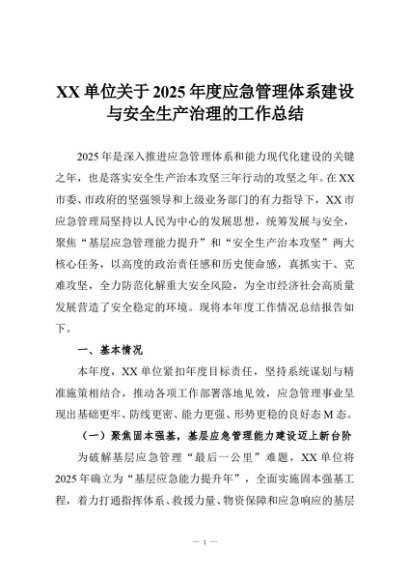 【七哥公文】2025年:XX单位关于2025年度应急管理体系建设与安全生产治理的工作总结+更多免费公文+VX:QiGeGongWen2024