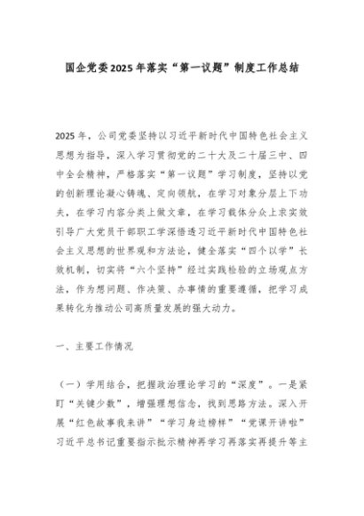 【七哥公文】2025年:国企党委2025年落实“第一议题”制度工作总结_副本+更多免费公文+VX:QiGeGongWen2024