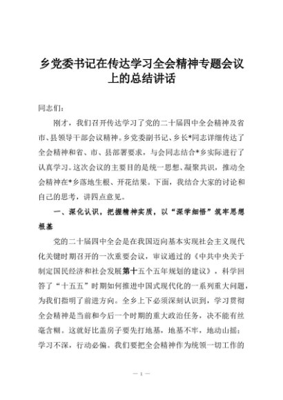 / 【七哥公文】2025年:乡党委书记在传达学习全会精神专题会议上的总结讲话+更多免费公文+VX:QiGeGongWen2024