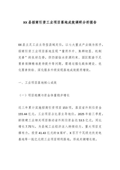 【七哥公文】2025年:XX县招商引资工业项目落地成效调研分析报告_副本+更多免费公文+VX:QiGeGongWen2024