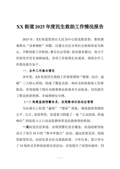 / 【七哥公文】2025年:XX街道2025年度民生救助工作情况报告+更多免费公文+VX:QiGeGongWen2024
