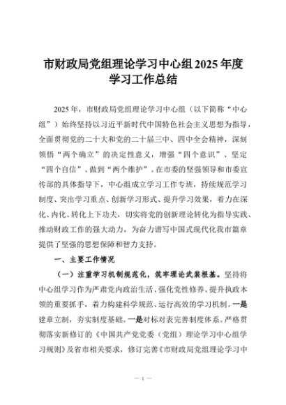 / 【七哥公文】2025年:市财政局党组理论学习中心组2025年度学习工作总结+更多免费公文+VX:QiGeGongWen2024