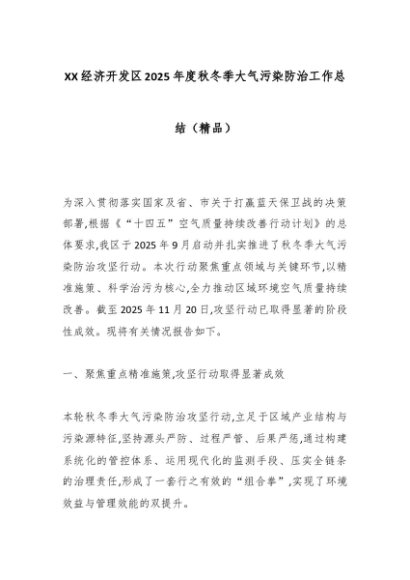 【七哥公文】2025年:XX经济开发区2025年度秋冬季大气污染防治工作总结(精品)_副本+更多免费公文+VX:QiGeGongWen2024