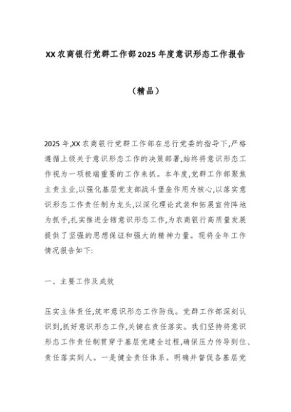 【七哥公文】2025年:XX农商银行党群工作部2025年度意识形态工作报告(精品)_副本+更多免费公文+VX:QiGeGongWen2024