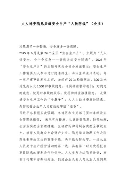 【七哥公文】2025年:人人排查隐患共筑安全生产“人民防线”(企业)_副本+更多免费公文+VX:QiGeGongWen2024