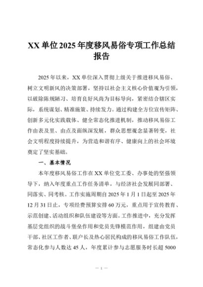 / 【七哥公文】2025年:XX单位2025年度移风易俗专项工作总结报告+更多免费公文+VX:QiGeGongWen2024
