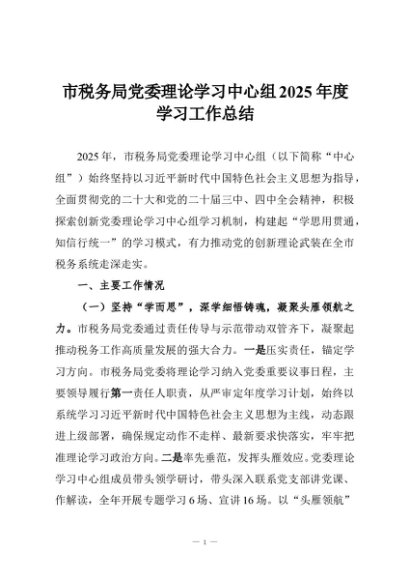 【七哥公文】2025年:市税务局党委理论学习中心组2025年度学习工作总结+更多免费公文+VX:QiGeGongWen2024