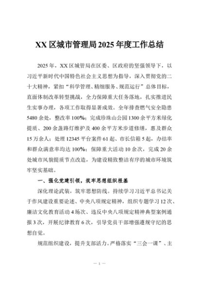 / 【七哥公文】2025年:XX区城市管理局2025年度工作总结+更多免费公文+VX:QiGeGongWen2024