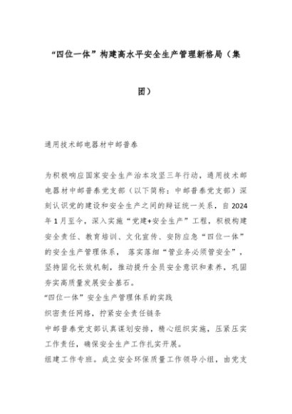 【七哥公文】2025年:“四位一体”构建高水平安全生产管理新格局(集团)_副本+更多免费公文+VX:QiGeGongWen2024