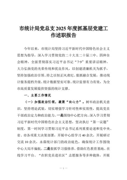 / 【七哥公文】2025年:市统计局党总支2025年度抓基层党建工作述职报告+更多免费公文+VX:QiGeGongWen2024