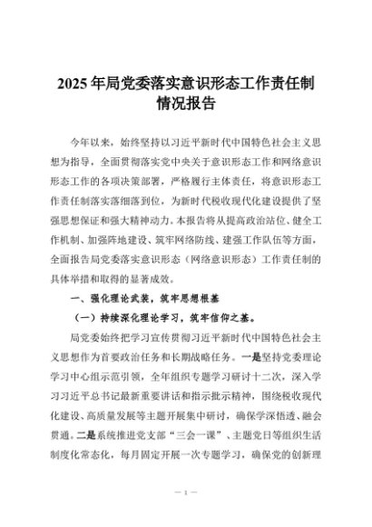 / 【七哥公文】2025年:2025年局党委落实意识形态工作责任制情况报告+更多免费公文+VX:QiGeGongWen2024