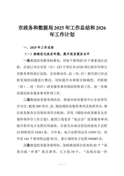【七哥公文】2025年:市政务和数据局2025年工作总结和2026年工作计划+更多免费公文+VX:QiGeGongWen2024