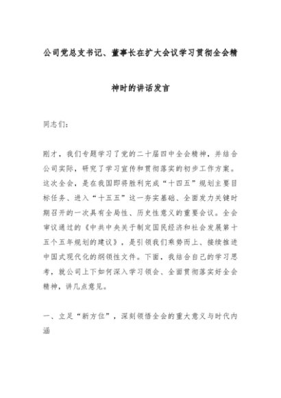 【七哥公文】2025年:公司党总支书记、董事长在扩大会议学习贯彻全会精神时的讲话发言_副本+更多免费公文+VX:QiGeGongWen2024