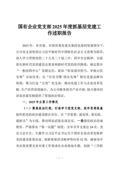 / 【七哥公文】2025年:国有企业党支部2025年度抓基层党建工作述职报告+更多免费公文+VX:QiGeGongWen2024