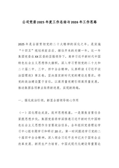 【七哥公文】2025年:公司党委2025年度工作总结与2026年工作思路_副本+更多免费公文+VX:QiGeGongWen2024