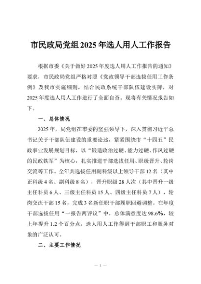/ 【七哥公文】2025年:市民政局党组2025年选人用人工作报告+更多免费公文+VX:QiGeGongWen2024