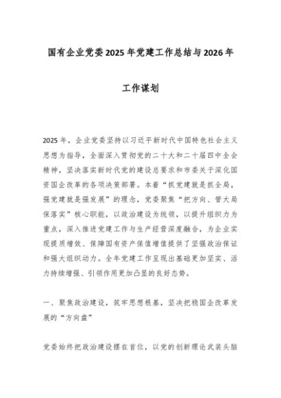 【七哥公文】2025年:国有企业党委2025年党建工作总结与2026年工作谋划_副本+更多免费公文+VX:QiGeGongWen2024