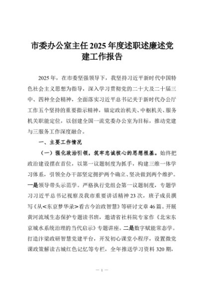 / 【七哥公文】2025年:市委办公室主任2025年度述职述廉述党建工作报告+更多免费公文+VX:QiGeGongWen2024