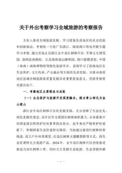 / 【七哥公文】2025年:关于外出考察学习全域旅游的考察报告+更多免费公文+VX:QiGeGongWen2024