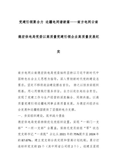 【七哥公文】2025年:党建引领聚合力 边疆电网谱新篇——南方电网云南德宏供电局党委以高质量党建引领企业高质量发展纪实_副本+更多免费公文+VX:QiGeGongWen2024