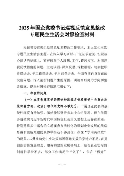 【七哥公文】2025年:2025年国企党委书记巡视反馈意见整改专题民主生活会对照检查材料+更多免费公文+VX:QiGeGongWen2024