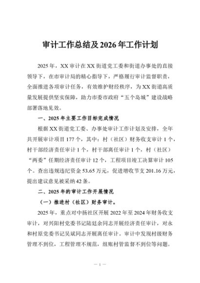 / 【七哥公文】2025年:审计工作总结及2026年工作计划+更多免费公文+VX:QiGeGongWen2024