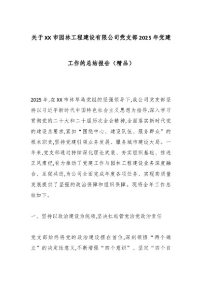 【七哥公文】2025年:关于XX市园林工程建设有限公司党支部2025年党建工作的总结报告(精品)_副本+更多免费公文+VX:QiGeGongWen2024