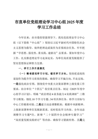 【七哥公文】2025年:市直单位党组理论学习中心组2025年度学习工作总结+更多免费公文+VX:QiGeGongWen2024