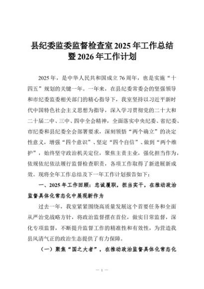 【七哥公文】2025年:县纪委监委监督检查室2025年工作总结暨2026年工作计划+更多免费公文+VX:QiGeGongWen2024