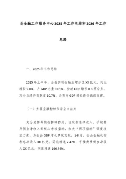 【七哥公文】2025年:县金融工作服务中心2025年工作总结和2026年工作思路_副本+更多免费公文+VX:QiGeGongWen2024