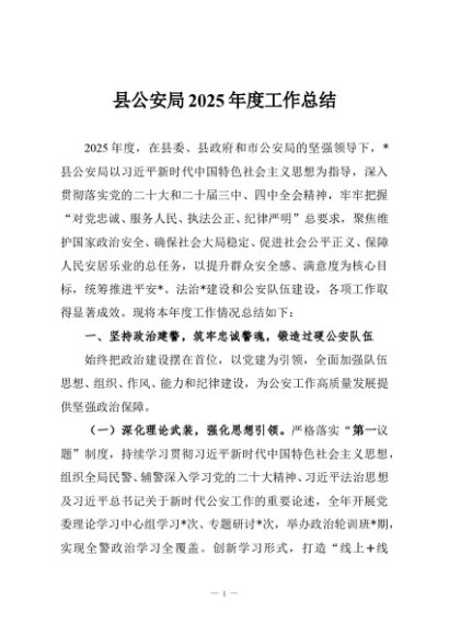 / 【七哥公文】2025年:县公安局2025年度工作总结+更多免费公文+VX:QiGeGongWen2024