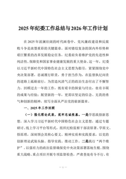 / 【七哥公文】2025年:2025年纪委工作总结与2026年工作计划+更多免费公文+VX:QiGeGongWen2024