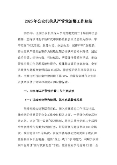 / 【七哥公文】2025年:2025年公安机关从严管党治警工作总结+更多免费公文+VX:QiGeGongWen2024