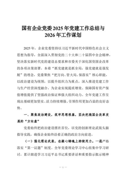 【七哥公文】2025年:国有企业党委2025年党建工作总结与2026年工作谋划+更多免费公文+VX:QiGeGongWen2024