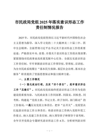 【七哥公文】2025年:市民政局党组2025年落实意识形态工作责任制情况报告+更多免费公文+VX:QiGeGongWen2024