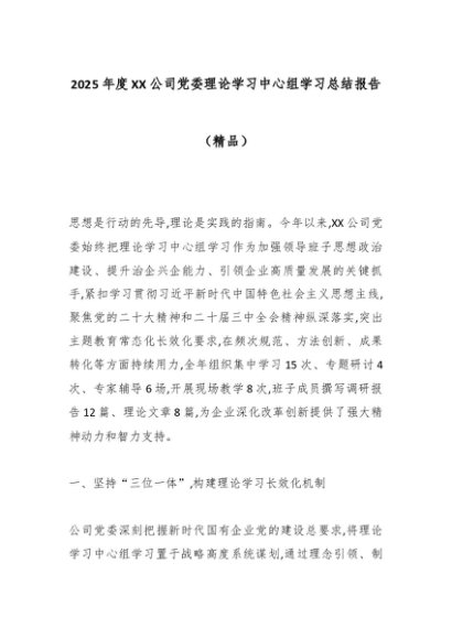【七哥公文】2025年:2025年度XX公司党委理论学习中心组学习总结报告(精品)_副本+更多免费公文+VX:QiGeGongWen2024
