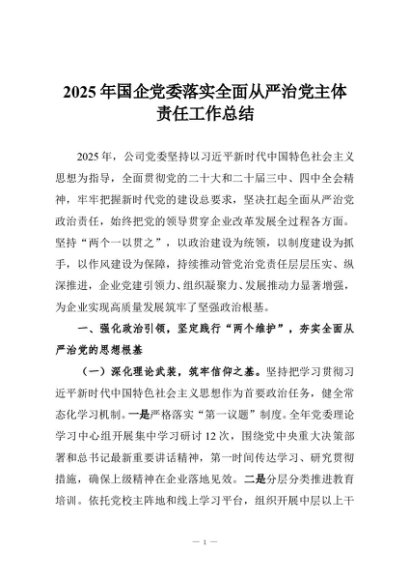 【七哥公文】2025年:2025年国企党委落实全面从严治党主体责任工作总结+更多免费公文+VX:QiGeGongWen2024