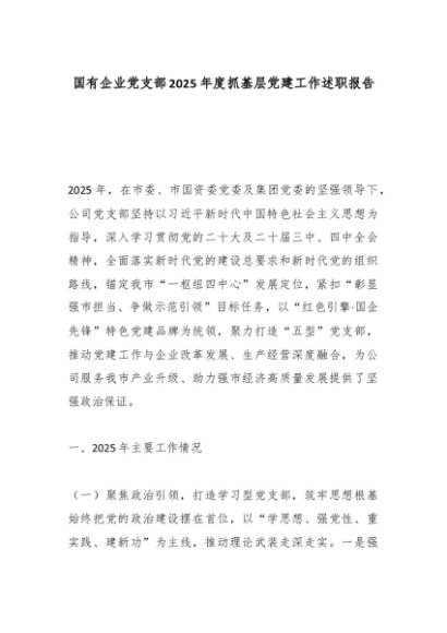 【七哥公文】2025年:国有企业党支部2025年度抓基层党建工作述职报告_副本+更多免费公文+VX:QiGeGongWen2024