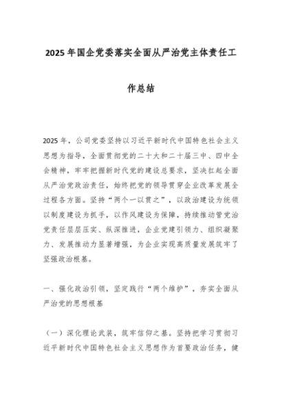【七哥公文】2025年:2025年国企党委落实全面从严治党主体责任工作总结_副本+更多免费公文+VX:QiGeGongWen2024