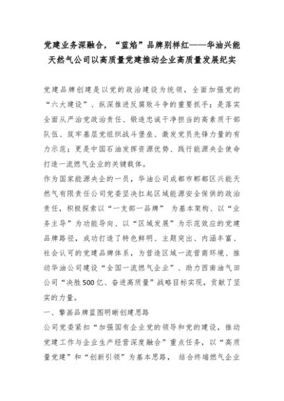 【七哥公文】2025年:党建业务深融合,“蓝焰”品牌别样红——华油兴能天然气公司以高质量党建推动企业高质量发展纪实_副本+更多免费公文+VX:QiGeGongWen2024