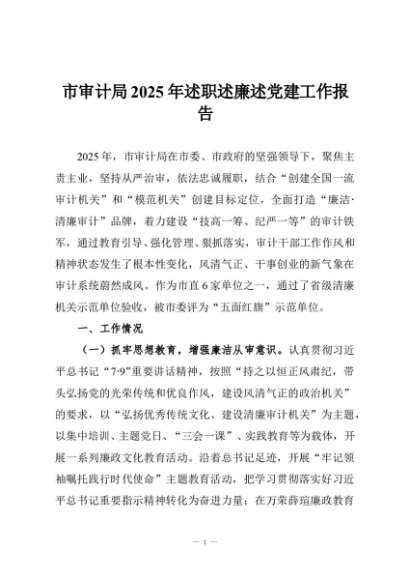 / 【七哥公文】2025年:市审计局2025年述职述廉述党建工作报告+更多免费公文+VX:QiGeGongWen2024